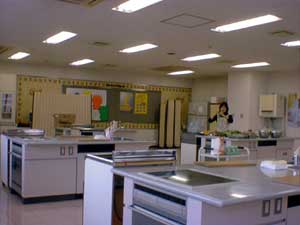 広く明るくて清潔な調理器具の完備した体験教室 |