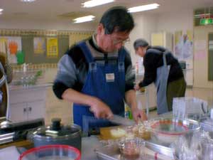 包丁使いもなかなか慣れたFさん以前男の料理教室 で学習されたようで板についてる感じです |