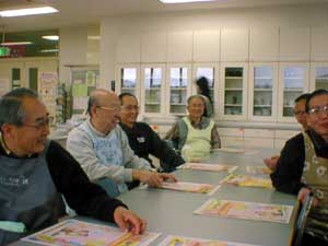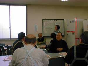 小雪の舞う寒い日でしたが、この日の昼食会はI・Kさんの企画で、今までと違い私達で作って食べる会でした。 場所は、中国電力北営業所2階の電化キッチン体験教室で、中電ホームコンサルタントの若い先生2人、14人 の参加者で3班に分かれての実習でした。 |