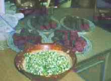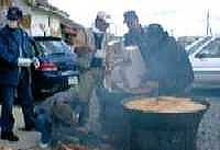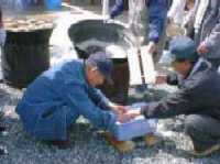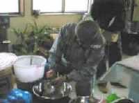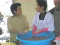 暖かい春の1日(2002.03.24)高校時代の同級生集合(15名)、昔懐かしい手法でのそば打ち、木綿豆腐、コンニャク作り,きな粉、ワイン搾り等の体験学習をして親睦を図り、楽しく食して有意義に過ごしました。 企画、場所を提供してくださったのは、甲田町在住の I さんご夫妻、豆腐作りの指導に特別A