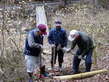 先日から獣害防止のため集落全体を金網で囲いこむ作業にとりかかっています。3年計画ですが今年は200万円で約1.5qの柵を山に張り巡らす計画です。中国新聞に「ムラは問う」のルポがありますが中山間地域の農業はどこも大変です。 昨日は白竜湖の近くのパークゴルフ場に出かけて互いの無事(?)を確かめ合いました。さすがK夫妻はダントツのスコアでした。 今日はミツマタの谷で遊歩道づくりをしました。(花の様子は安芸高田市のぺーじにあります。昨日の映像です)その後芝桜植栽のための草刈りと野焼きをしましたが雨が降り出し中止です。 午後はKさん達と役場で会議でした。 |