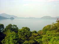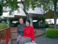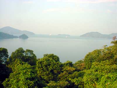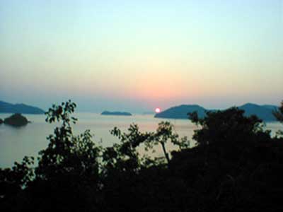 朝の海、昨夕美しい夕日が観れた島の手前には、白くてかなり大きな船が2隻航行していました。大きい方は自動車運搬船だとHさんが言っておられました。 マスターコース20期生紅2点いずれアヤメかカキツバタ???(自惚れもいい加減にと男性軍の声が・・・)