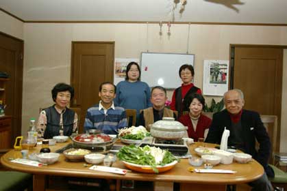 ’04.09.04にパソコンクラブEBAが発足しました。以前アザミの写真を送信して頂いたり、いろいろとお世話に なっています花本芳雄さんご夫妻とエバヤマザクラでおなじみの写真愛好家馬野和道さんの提案で産声をあげ、 私もメンバーの1人に加えて貰いました。目下8名(写真は1名欠席)で、月1回 H さんのご自宅に集まってそれ ぞれが出来る事や諸々の話題で楽しんでいます。パソコンに興味ある人達(30代〜70代)の集いなので末永く 継続発展するよう頑張りたいと思います。 |