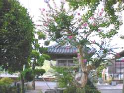 境内には,大きなイチョウの木や,サルスベリ (木登り得意なサルでも滑ると言われるつるつるした幹でピンクの可愛らしい花をつけます) 柳や椿の木、そのほか石段や、鐘突き堂、石灯籠等いろいろあって、かくれんぼ、鬼ごっこ、缶けり、縄跳び等等、遊ぶのにはもってこいの恰好の場所でした。
