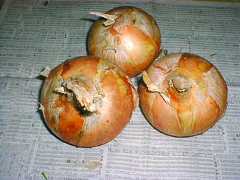 今夏は何時になく大好きな野菜をあちこちから頂戴しました。安芸高田市甲田町小原に在住の同級生 A さんの 菜園で採れた超ビッグなタマネギ、ちなみに計量してびっくり、なんとなんと一つ一キログラムもありました。 思わず遺伝子組替え?と聞いてみたら違っていました。ご夫妻仲良く丹精込めた結果だそうで・・・ご馳走さま。 |