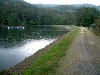 先日登山の下見をされた花本さんに論山堤の写真を お願いしておいたところ16日(木)に山友35名で登山 大夕立に遭い余り良い写真が撮れませんでしたがと早 速送信頂き有難うございます。車のわだちの残るえん 堤は昔もっと狭かったような・・・水面に映る周囲の景色 は素敵。撮影会の時乗せて貰った愛車も見えますネ。 私も今秋は是非とも行こ〜うと。♪わくわく♪ 蒸し暑い広島市内も大夕立来ないかなぁ〜2005.06.19 |