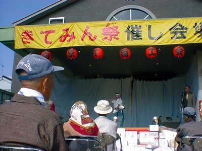 農林大学の講義が終了後、向原の公民館周辺できてみん祭というお祭りが開催されていると聞き、足を延ばし 覗いてみました。民謡、詩吟に剣舞、ハンヤやキツネノカミソリで、おなじみの京極 博さんの手品もありました。 彼にこんなかくし芸があるとは全く知りませんでしたが、毎年出場されているようで、町内ではよく知られている ようでした。司会者は若い女性でしたが、なかなか上手で次々と進行し、向原にちなんだクイズ等もあり、参加し て楽しみました。賞品の抽選券も配られましたが、こちらは見事にハズレ。 |