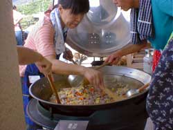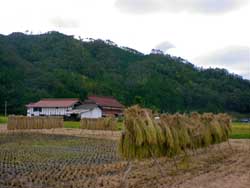 先日台風18号の後10日(金)に降った大雨で田んぼがぬかるんでいるため、コシヒカリの刈り取りやハゼ掛け の作業は、午後にしてスタッフの方々で用意してくださいましたコシヒカリの炊飯、カレー作り、ヤマメの塩焼きを 午前中に体験することになりました。焼きたてのヤマメの味は本当に美味しかった!! 薪と昔のお釜で大量に炊いたご飯の味も格別でした。各種のお漬物にも舌づつみ(*^_^*) |