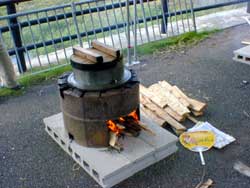 お釜と薪での炊飯(クリック) 大きな圧力鍋では 具たくさんのカレー作り |