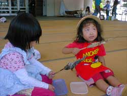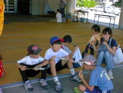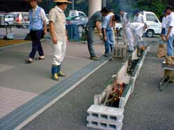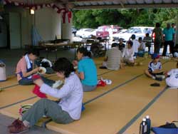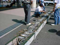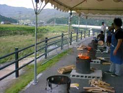 農林大学2回目講座 ヤマメの塩焼き、炊飯、カレー、稲刈り、ハゼ掛け、芋掘り 2004.09.12 |