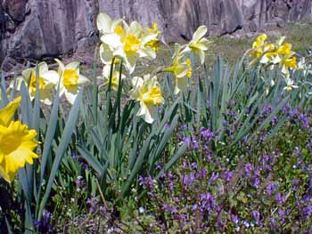 向原町坂の川沿にも、珍しい花や小さな雑草まで〜。まるで競い合うように春を謳歌していました。