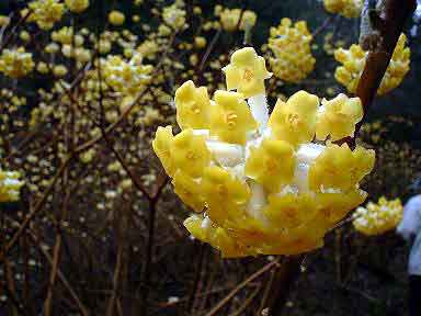 3/31広島市東区在住の Q J Y通信社(休日は山にいます )と言う意味だそうですが、真鍋 節夫 様から 「虫居谷に行ってきました」と言うメールと共に素晴らしいミツマタ群落とアップの写真を添付して頂きましたので、 一人で眺めるには勿体無くて早速ご紹介させて頂きます。 記事にして近々ホームページに掲載されますそうで楽しみです。http://www1.u-netsurf.ne.jp/~qjy/ QJY通信は写真付きで掲載しておられます。ミツマタに付いては第155号に詳しく記述されています。 |