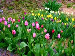 今年は万物芽吹く春の訪が早く、チューリップの花や |