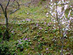 2003.03.16 向原町での自然観察会の後、3/30と4/2にミツマタとかたくりの花の観賞にふるさとに出向きま した。何度観ても美しく飽きない風景だと思います。虫居谷の谷川のせせらぎと甘い香りは、日常のわずらわしさ を忘れさせてくれます。 |