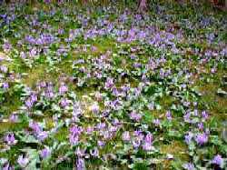![]() 桜の花のような華やかさはありませんが、山の斜面に 咲く小さな花は、とても愛らしく可憐で、なんとも言えない |