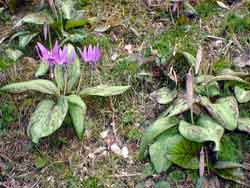 向原には春の一時期(3月下旬〜4月上旬)にしか開花しない「かたくりの花」の自生地があります。 (長田地区、寺山地区) |