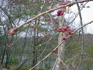 7千本と言われる土師ダムの桜のつぼみは未だ固く開花には日数が掛かりそうでしたが、入り口近くのしだれ桜 は、もうピンクのつぼみがかなり膨らんで、もうじき開花するのではと思われる若い木もありました。 ウグイスの鳴き声を期待していましたが、一声も聞くことが出来ませんでした。満開の桜の時期にならないと、 美しい声を耳にすることは難しいのかも知れません。 |