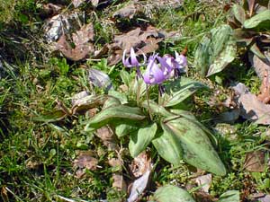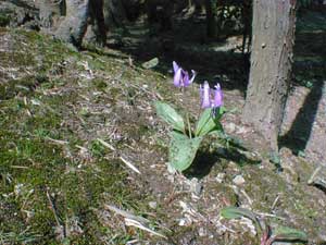 長田地区のカタクリの花は、未だ少し早すぎましたが、陽当たりの良い場所ではチラホラと開花しているのもあり 早々小さなシートに這いつくばるようにして開花の様子を撮影している熱心なカメラ愛好家の姿も見かけました。 私たち以外にも三々五々と鑑賞に訪れた人達に出会いました。27日〜「かたくり祭り」の看板が出ていました ので、今週末の土、日はたくさんの来場者で賑わうことでしょう。好天が続けばつぼみが一気に開花しそうです。 |