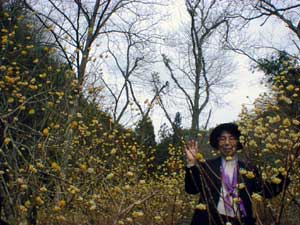 春うららの天候に誘われて、今春も虫居谷に黄色いボンボリ(真鍋 節夫様の表現を借用させて貰いました)を 観に行きました。ここ数日の暖かさで予想通り満開でした。平日のお昼下がりとあって、誰もいない静かな山間に 友と2人谷川のせせらぎの音を聞きながら。小さな橋を渡って、甘い香りの漂う花灯りの中を散策しました。 白い車が一台上がって来ましたが、直にUターンして帰ってしまいました。 |