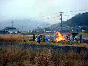1/26(日)生家が今年とんどのトヤ(世話役)に当っていると聞いたので、お正月の年賀を兼ねて訪れました。当日は、あいにくの天候、雨になりそうなので何時もよりは早く点火するからと、TELが入り急いで車で駈けつけました。現地に着いた時は小雨が降っていたにもかかわらず、盛んに良く燃えていました. 何十年振りかに青竹の筒でのお神酒を飲んだり、竹にはさんだ鏡餅を焼いてぜんざいにして食べました美味しかったです。 普段会えない講中の人たちともお話できたり、私よりずっと後輩の子供さんたちがすっかり大きくなっておられるのには、ビックリするとともに、歳月の流れをつくづく感じました。 生家を継いでいる弟夫妻、甥と姪の歓待を受け、今なお田舎の行事に触れて父母が元気だった頃を思いだし、懐かしく楽しいとんどまつりでした。 |
