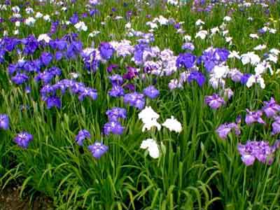 6月中旬から下旬にかけて一番見ごろの花しょうぶは 「町の花」 として選定されており、 毎年この時期に開催 今年(2001年6月16,17日)は梅雨中休みの好天に恵まれ、向原花しょうぶ園、姫の里しょうぶ園ともに農村 |